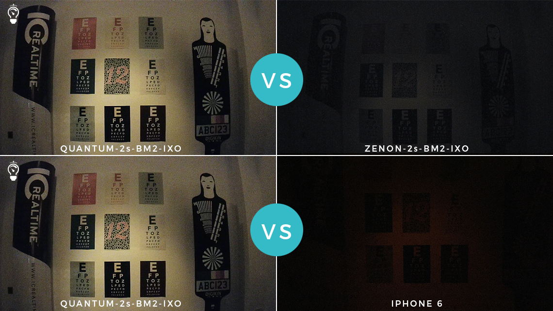 As you can see the QUANTUM-2s-BM2-IXO Sirius camera retains definition and colour in extreme darkness for longer against both our conventional ZENON-2s camera and an Iphone 6